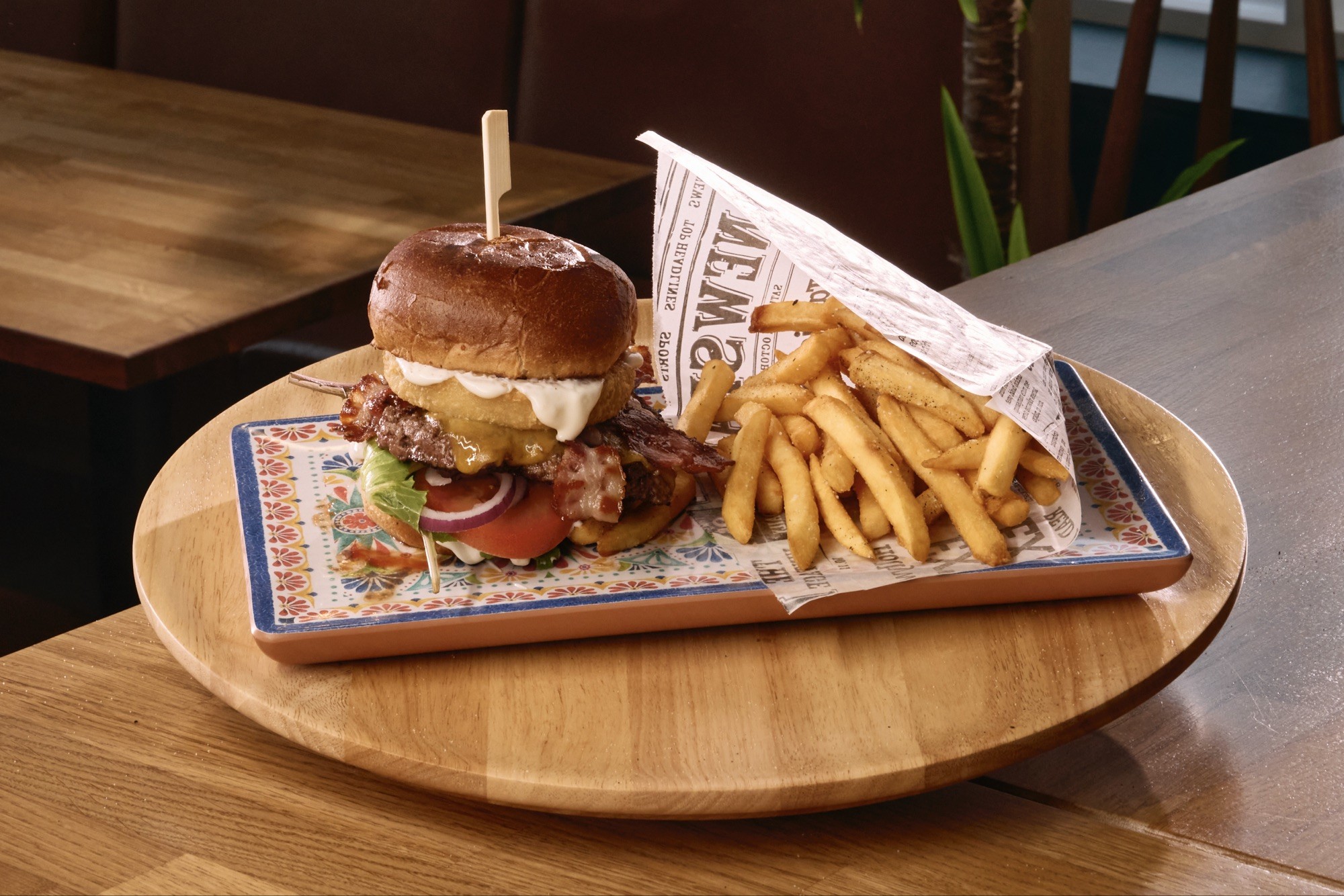 Brioche bolli, 200 g. av góðum malnum kjøti, cheddarost, reyðleykur, salatmix & Tasty dressingur