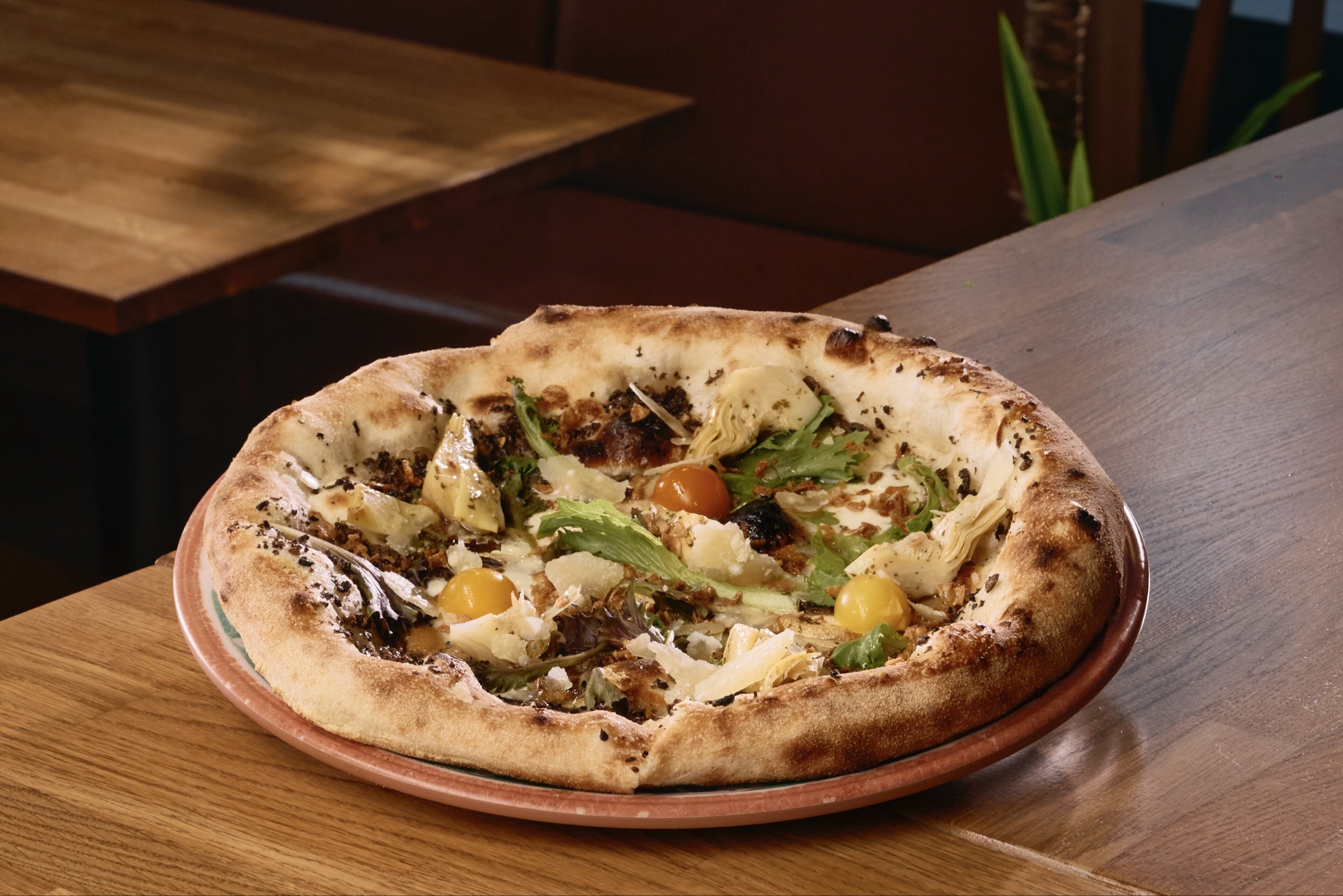 Heimagjørd ostasós, rivin mozzarella ostur, cheddar sós, neytakjøt, feskir soppar, chorizo